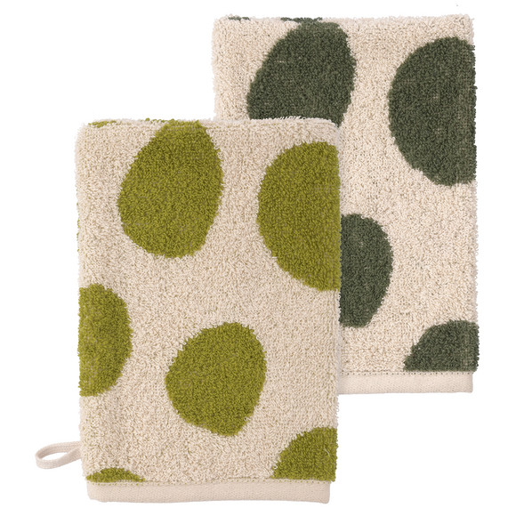 2 Waschhandschuhe mit Allover-Muster cremeweiss / grün / dunkelblau