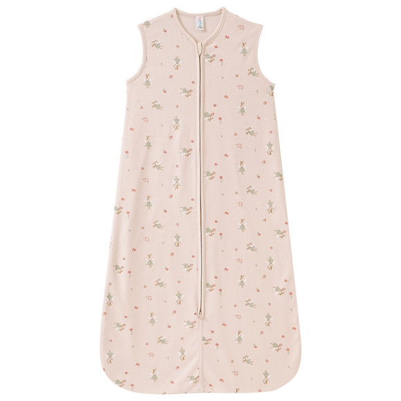 Leichter Schlafsack in Beige mit Elefanten-Motiven als Allover-Print. Weicher Baumwolljersey, doppellagig ohne zusätzliche Wattierung, für die wärmere Jahreszeit. TOG-Wert 0.5. Langer Reißverschluss, von unten zu öffnen und mit Kinnschutz gearbeitet. Paspelierte Abschlüsse an Hals- und Armausschnitten. Leicht ausgestellt geschnitten für eine gute Bewegungsfreiheit des Babys.