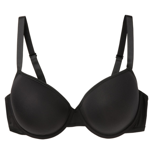 Schlichter schwarzer Bügel-BH aus anschmiegsamer Mikrofaser mit wattierten Cups. Elegante Kante am Rand der Cups für eine tolle Optik. Unterbrustband in der Weite dreifach regulierbar. Perfekter Halt durch doppelten bzw. dreifachen (ab Cup C) Häkchenverschluss im Rücken. Elastische Träger in der Länge regulierbar.