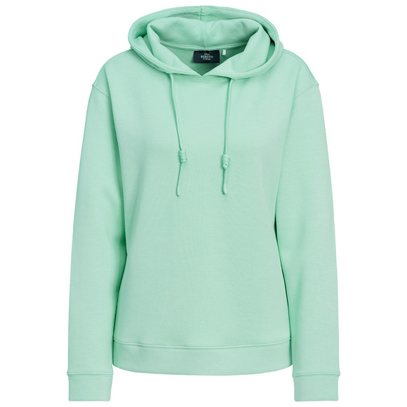 Hellgrünes Sweatshirt aus einem angenehmen Modal-Mix mit Kapuze und Kordelzug. Mit Reißverschlüssen seitlich am Saum und elastischen Bündchen an dem Armausschnitten und am Saum.