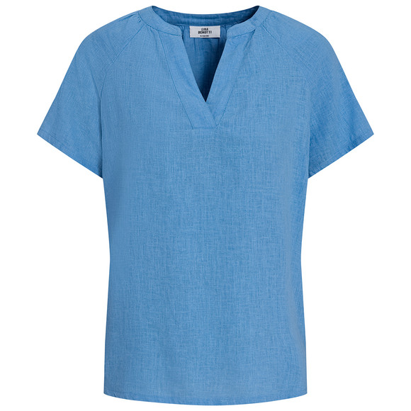 Damen Leinen-Bluse mit Serafino-Ausschnitt