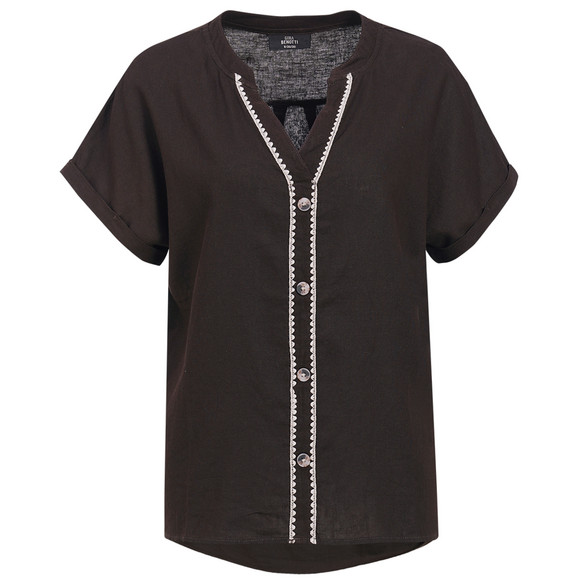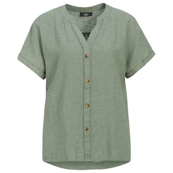 Damen Leinen-Bluse mit Zierknöpfen
