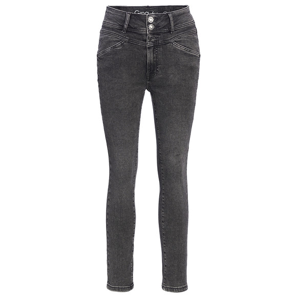 Graue Skinny-Jeans mit Used-Waschung. Elastischer Bund mit dreifacher Knöpfung und Reißverschluss. Im 5-Pocket-Style und mit fünf Gürtelschlaufen. Mit Marken-Label hinten am High-Waist-Bund. Figurnah und bequem dank Stretchanteil.