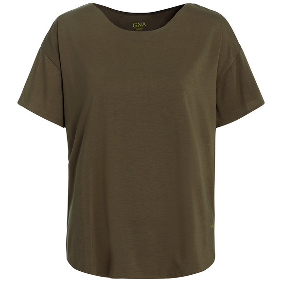 Blaues Sport T-Shirt aus weich fließendem Material-Mix. Mit flachem Rundhalsausschnitt und überschnittenen Ärmeln. Locker und gerade geschnitten mit abgerundetem Saum und kleinem gummiertem Marken-Print links am Saum. Funktion und Tragekomfort für maximale Performance: schnell trocknend, atmungsaktiv und hoher Tragekomfort.