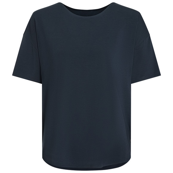 Schwarzes Sport T-Shirt aus weich fließendem Material-Mix. Mit flachem Rundhalsausschnitt und überschnittenen Ärmeln. Locker und gerade geschnitten mit abgerundetem Saum und kleinem gummiertem Marken-Print links am Saum. Funktion und Tragekomfort für maximale Performance: schnell trocknend, atmungsaktiv und hoher Tragekomfort.