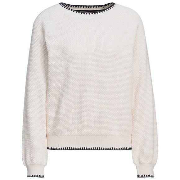 Damen Strickpullover mit Waffelstruktur cremeweiss