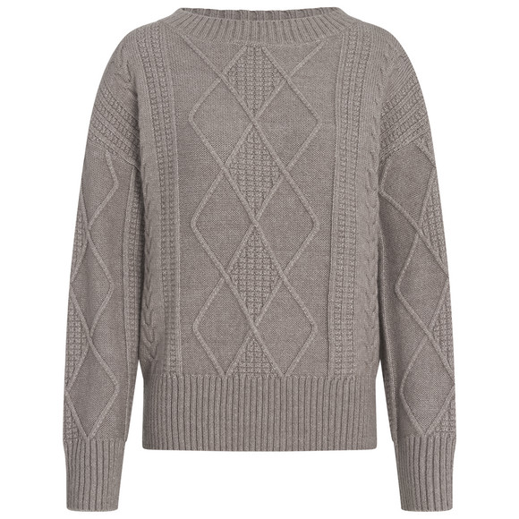 Damen Strickpullover mit Zopfmuster grau