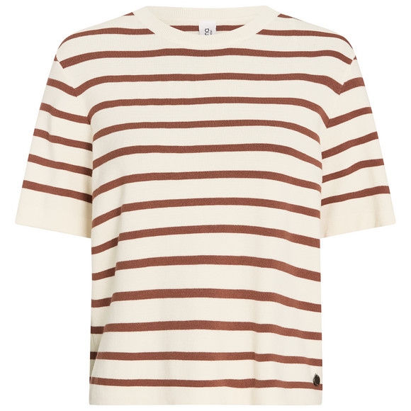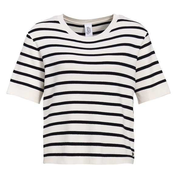Weich fließendes Shirt aus feinem Strick in Creme mit schwarzen Streifen. Aus angenehmem Viskose-Mix mit Rundhalsausschnitt und Rippbündchen.