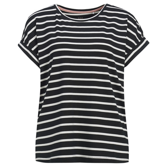 Damen T-Shirt mit fixierten Turn-ups schwarz / weiss