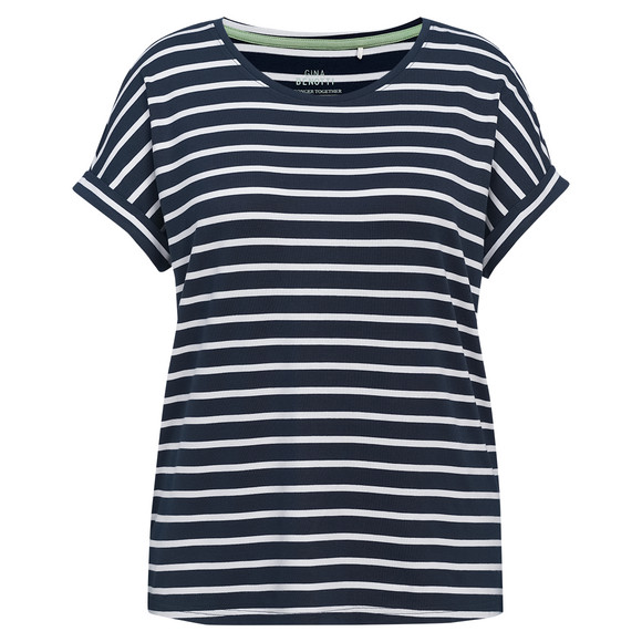 Damen T-Shirt mit fixierten Turn-ups dunkelblau / weiss