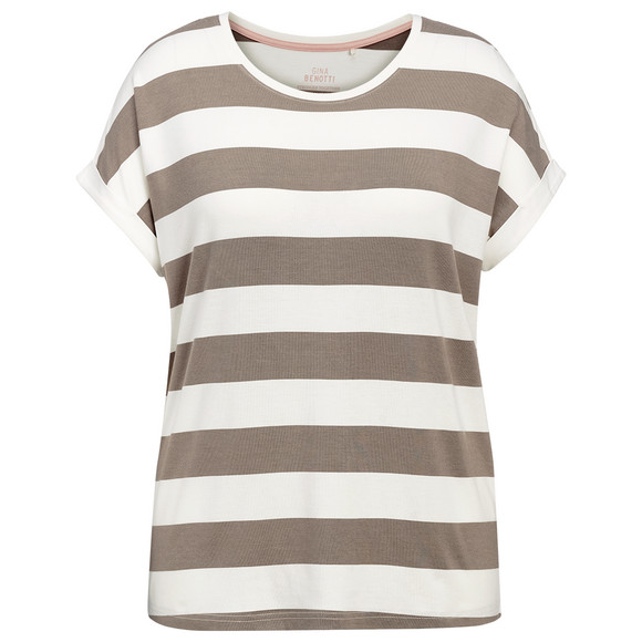 Damen T-Shirt mit fixierten Turn-ups hellbraun / weiss