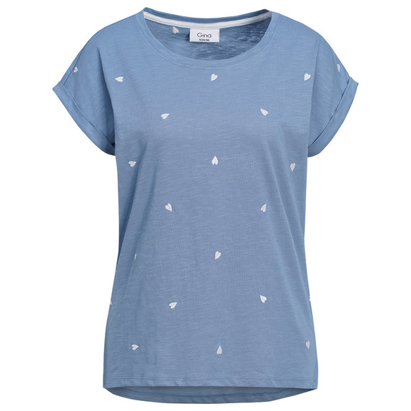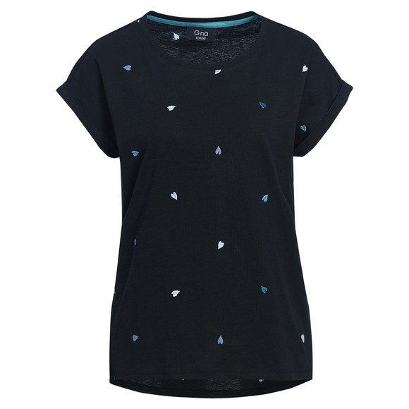 Schwarzes T-Shirt aus angenehmer Bio-Baumwolle mit Flammgarn-Struktur. Bestickt mit Herzen in Blau- und Grüntönen. Rundhalsausschnitt mit schmalem Bündchen. Überschnittene Ärmel mit fixiertem Umschlag. Saum hinten etwas länger.