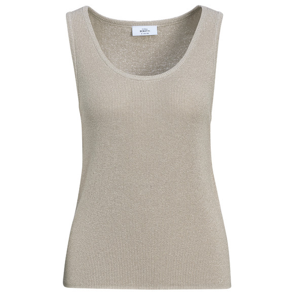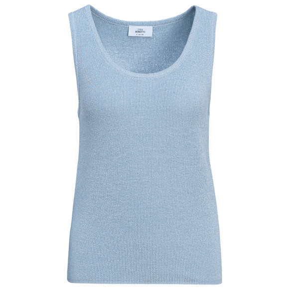 Hellblaues Top in angenehm weicher Qualität mit Effektgarn, in gerippter Struktur und mit Rundhalsausschnitt. Figurnaher Schnitt.