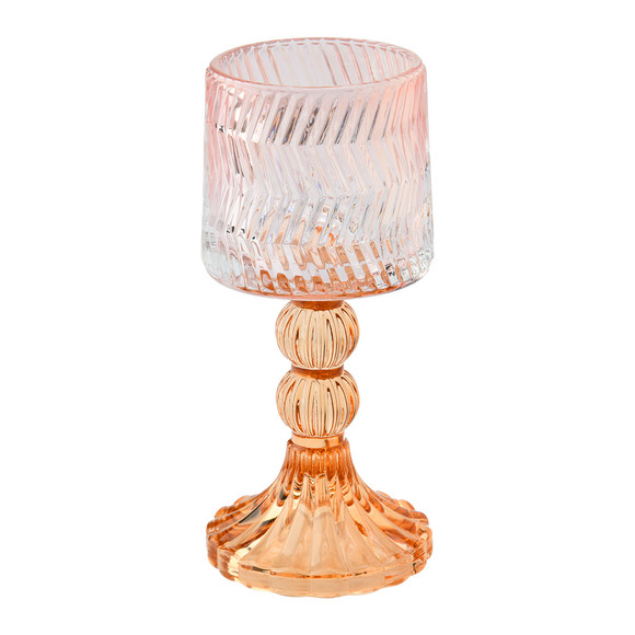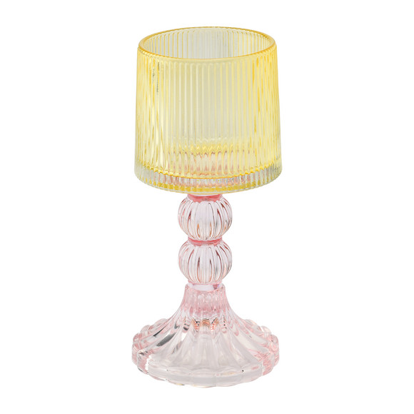 Großer Kerzenhalter mit Relief-Muster rosa / gelb