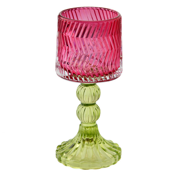 Großer Kerzenhalter mit Relief-Muster grün / pink