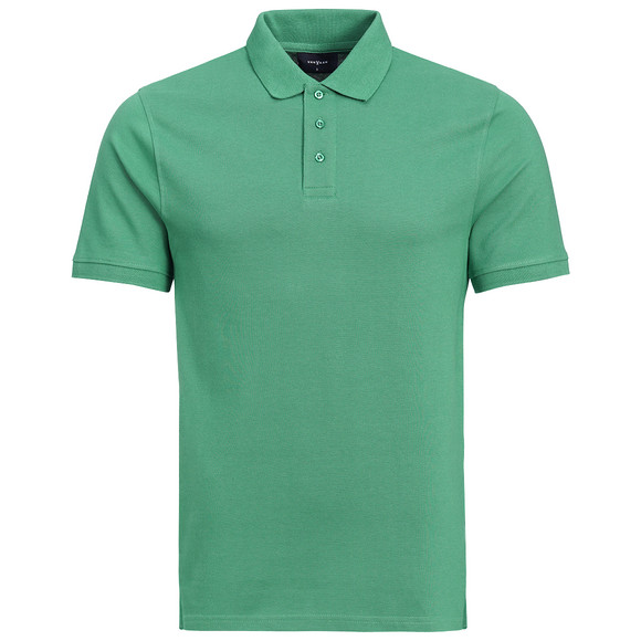 Klassisch-sportives Poloshirt in Petrol aus zertifizierter Bio-Baumwolle und Piqué-Struktur. Polokragen und Knopfleiste vorne. Kurze Ärmel mit Rippabschluss und seitliche geschlitzter Saum. Bequem lockere Passform.