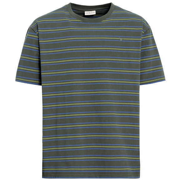 T-Shirt in Dunkelbraun aus zertifizieter Bio-Baumwolle und im mehrfabigen Ringel-Look. Mit angesetztem Rippenbündchen am Rundhalsausschnitt. Locker sitzende Passform mit überschnittenen Ärmeln.