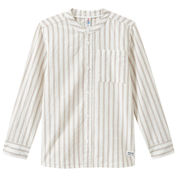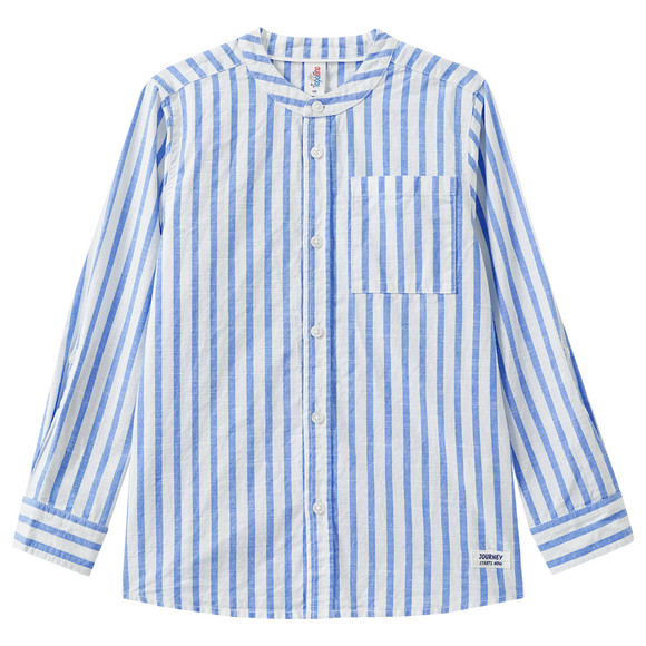 Blau-weiß gestreiftes Hemd mit rundem Ausschnitt und Knopfleiste. Mit praktischen Turn-up-Ärmeln, zweifach geknöpften Manschetten und einer Brusttasche.