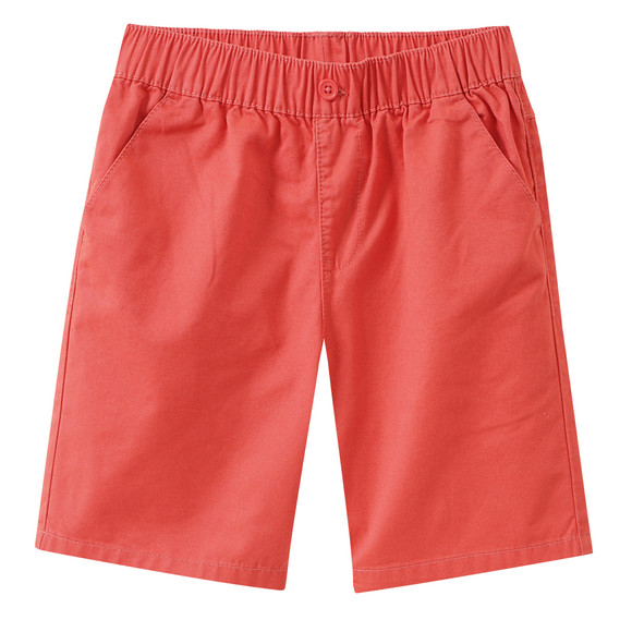 Shorts in Koralle mit elastischem Bund und Zierknopf. Zwei Einschubtaschen vorne.