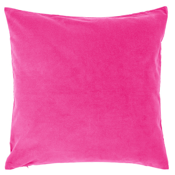 Pinke Kissenhülle aus Samt. Schließbar mit Reißverschluss. Ohne Füllung.