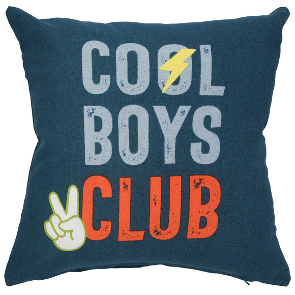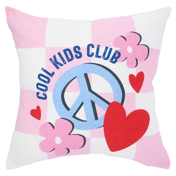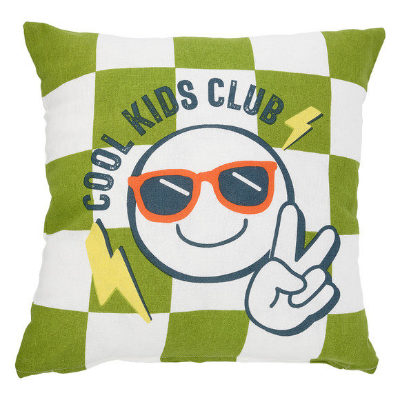 Kissenhülle aus Baumwolle im Karo-Muster in Weiß und Grün. Mit großem Emoji-Motiv und Schriftzug auf der Vorderseite. Schließbar mit Reißverschluss.