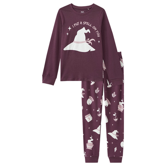 Mädchen Schlafanzug mit leuchtendem Print dunkellila, aktuell leider ausverkauft