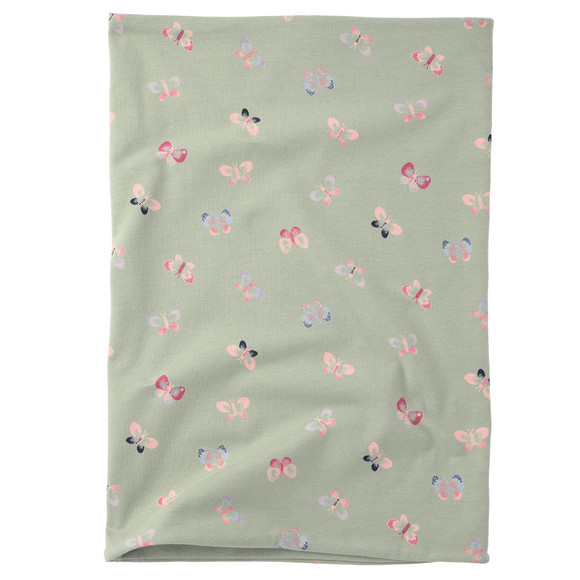 Grüner Rundschal aus Baumwolle mit Schmetterlingen Allover-Print. Doppellagig gearbeitet.