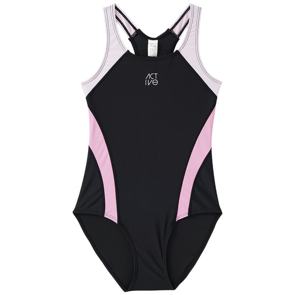 Mädchen Sport-Badeanzug mit Ringerrücken schwarz