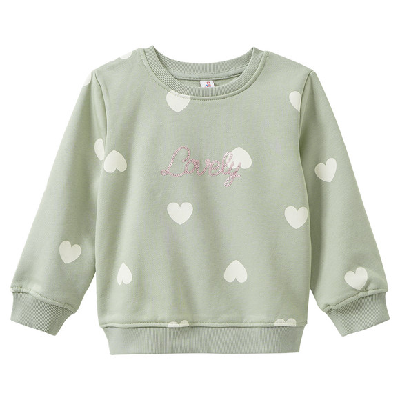 Rosa Sweatshirt aus einem angenehmen Material-Mix mit hohem Baumwoll-Anteil. Mit roten Herzen allover und einem glitzernen Schriftzug. Gerippte Bündchen am runden Halsausschnitt, den Armausschnitten und am Saum.