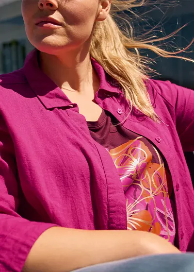 Stilvolles Pink vereint sich mit sattem Grün, floralen Ornamenten und einem markanten Leo-Touch. Luftige Silhouetten in Jeansblau und Olive schmeicheln Ihren Kurven und eröffnen unzählige Möglichkeiten für mühelose Kombinationen.