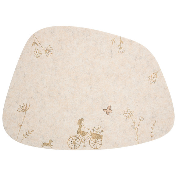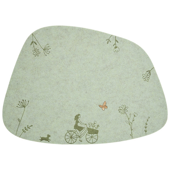 Platzset aus Filz mit Blumen-Motiven am Rand. In organsicher Form.