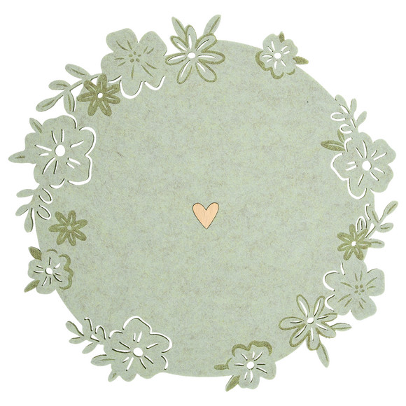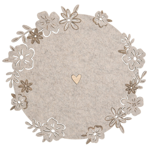 Platzset aus Filz mit Blumen-Motiven am Rand. In runder Form.
