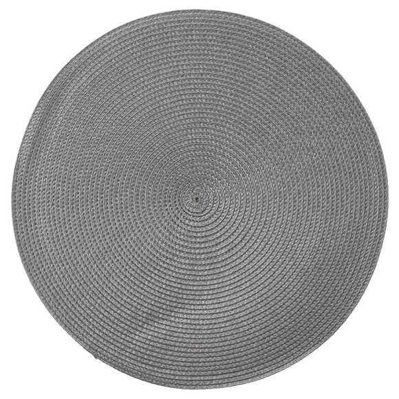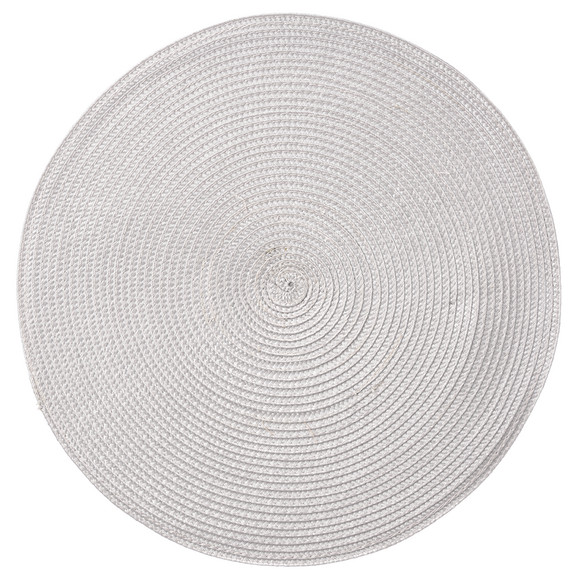Rundes, beiges Platzset in schlichter Flecht-Optik.