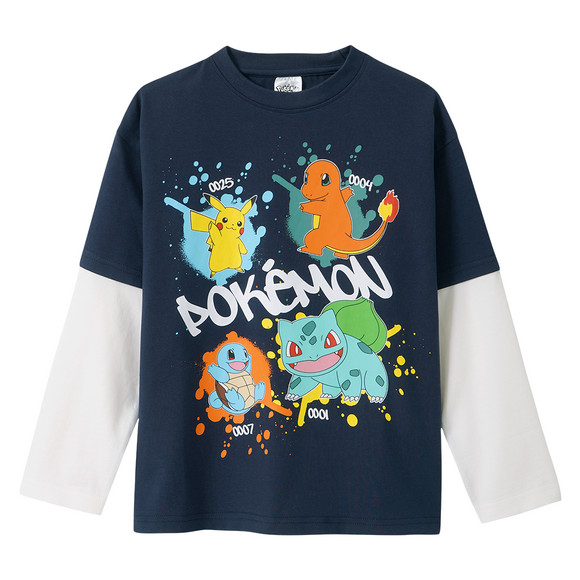 Dunkelblaues Langarmshirt im Lagen-Look von "Pokémon" mit Print auf der Vorderseite und feinem Rippenbündchen am runden Halsausschnitt.