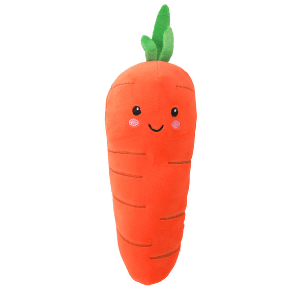Oranges "Softlings Foodies"-Plüschtier in Form einer Karotte mit dem Namen "Crunch". Maße ca. 25 x 9 cm (HxB).