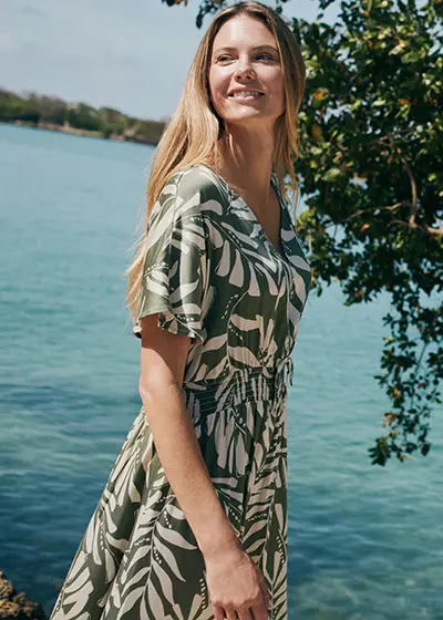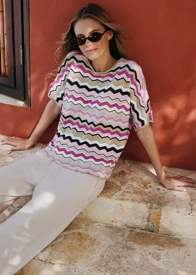 Diese Kollektion vereint grafische Muster, leuchtende Akzente und fließende Silhouetten zu einem Look voller Leichtigkeit. Für Tage am Wasser, unter Palmen oder mitten in der Stadt – stilvoll, selbstbewusst und wunderbar sommerlich.