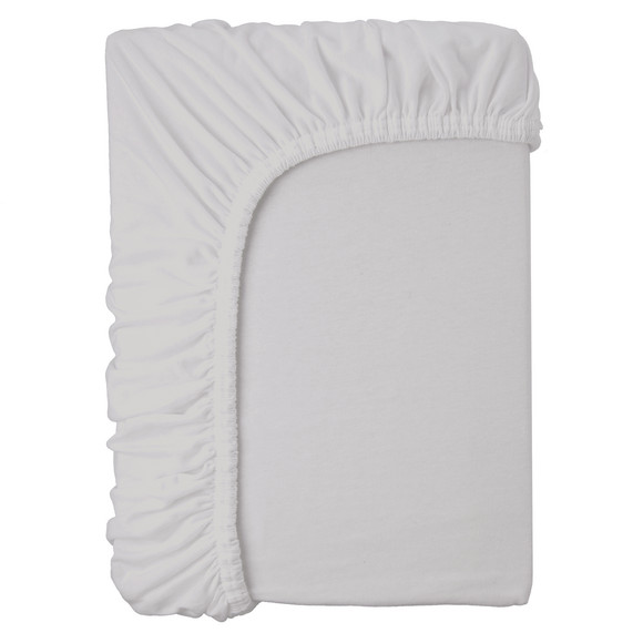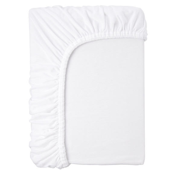 Mach es dir gemütlich! Weißes Spannbettlaken aus angenehmer Baumwolle. Exzellente Passform dank elastischem Rundumgummi. Geeignet bis zu einer Steghöhe von ca. 30 cm. Maße ca. 140 x 200 cm (BxL).