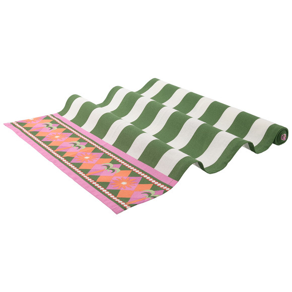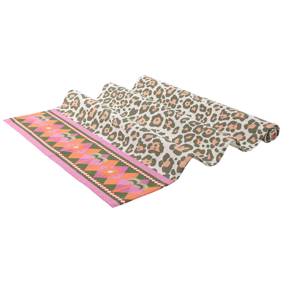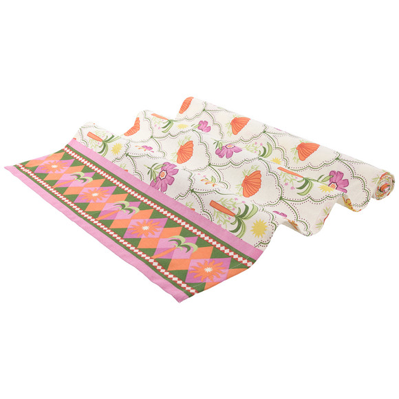 Tischläufer aus Baumwolle mit buntem Design allover. Mit rundum gesäumten Abschlüssen.