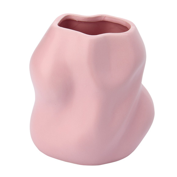 Grüne Vase aus Keramik in organischer Form. Mit schmaler Öffnung oben.