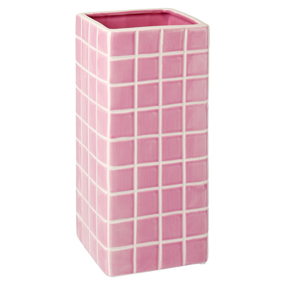 Quadratische Vase mit Kacheln in Orange in gefliester Optik.