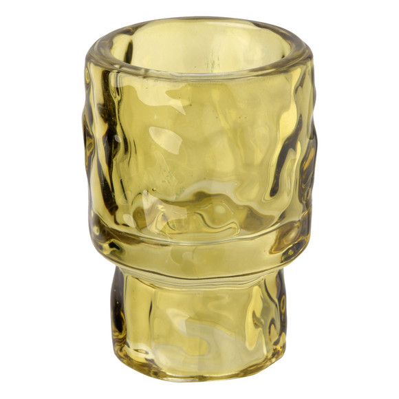 Runder wendbarer Kerzenhalter aus Glas in Grün. In strukturierter Optik. Ideal geeignet für eine Stabkerze oder ein Teelicht. Maße ca. 4,5 x 6,5 cm (ØxH).